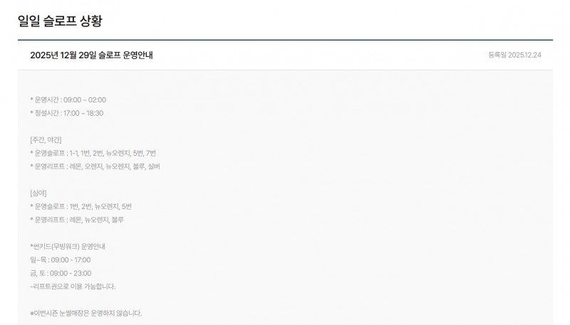 자주묻는질문 이용문의 뉴스&이벤트 슬로프소식 이용후기