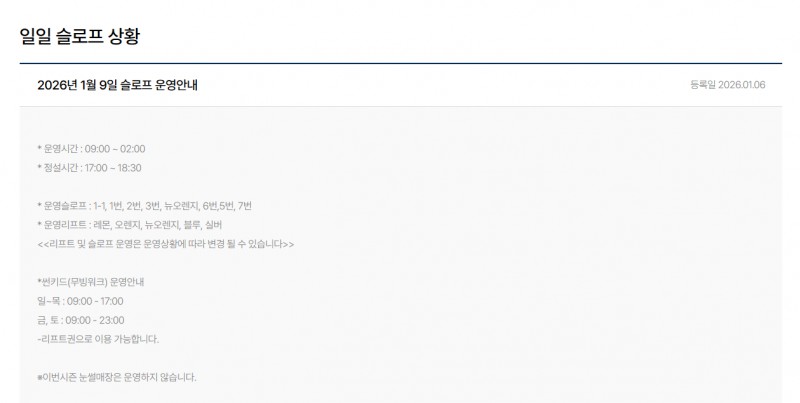 2026년 1월 9일 슬로프 소식
