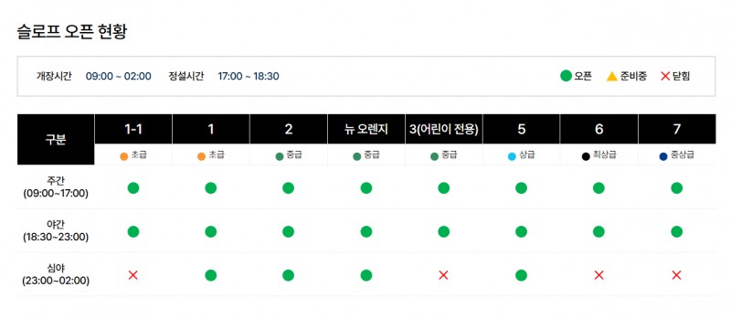 심야영업은 2시 까지이며, 이용 하실때 슬로프 및 시간 확인 부탁드립니다. :)