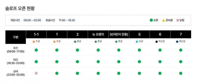 심야영업은 2시 까지이며, 이용 하실때 슬로프 및 시간 확인 부탁드립니다. :)