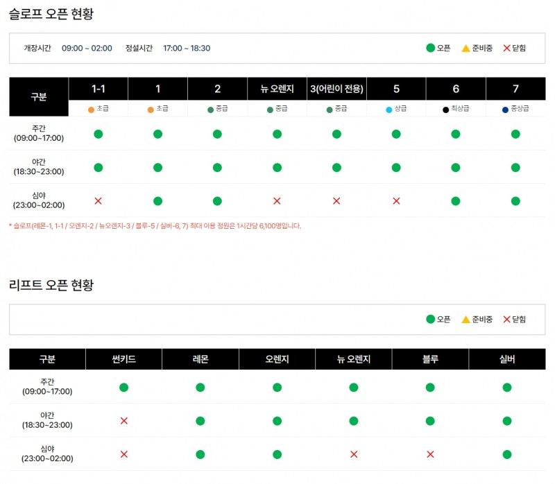 심야영업은 2시 까지이며, 이용 하실때 슬로프 및 시간 확인 부탁드립니다.