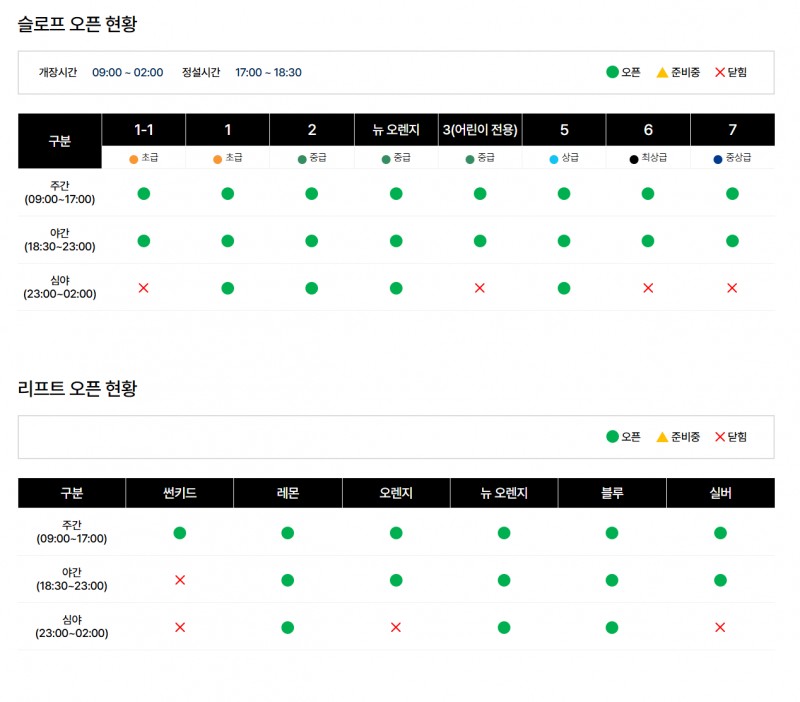 심야영업은 2시 까지이며, 이용 하실때 슬로프 및 시간 확인 부탁드립니다. :)