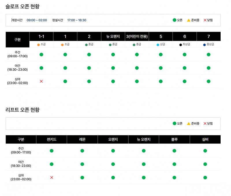심야영업은 2시 까지이며, 이용 하실때 슬로프 및 시간 확인 부탁드립니다. :)