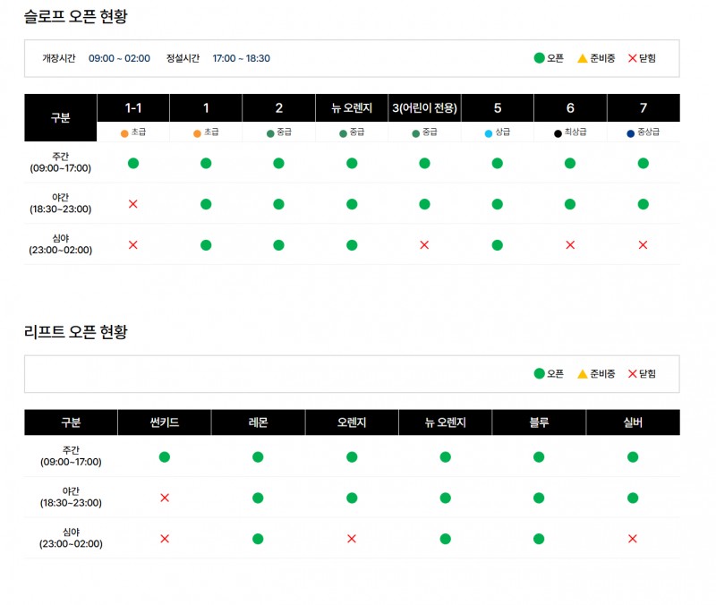 심야영업은 2시 까지이며, 이용 하실때 슬로프 및 시간 확인 부탁드립니다. :)